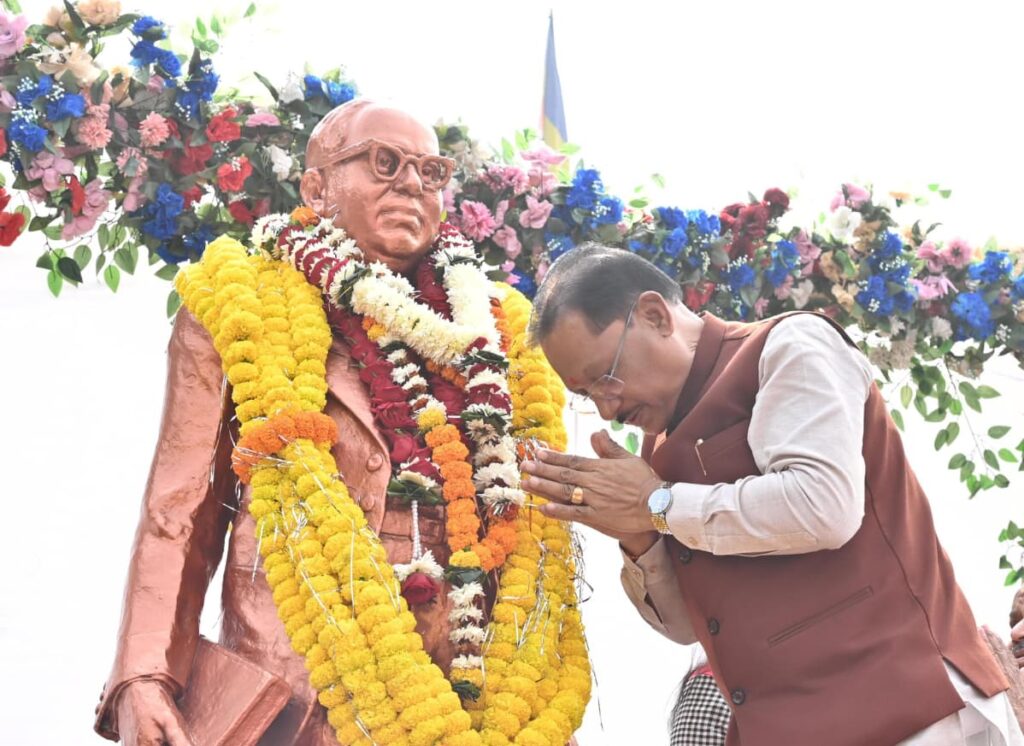 मुख्यमंत्री विष्णुदेव साय ने संविधान दिवस के अवसर पर डॉ. भीमराव अंबेडकर की प्रतिमा पर माल्यार्पण कर किया नमन