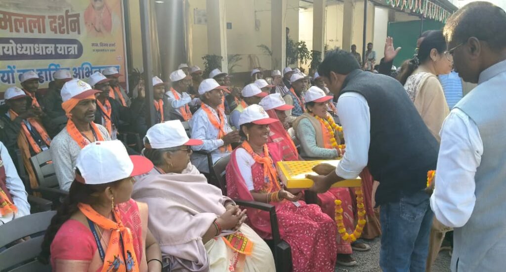 अयोध्या धाम में विराजमान प्रभु श्री रामलला के दर्शन करके आज कवर्धा लौटे 69 श्रद्धालुओं का स्वागत अत्यंत भव्य और भावपूर्ण वातावरण में किया गया। उपमुख्यमंत्री श्री विजय शर्मा की ओर से जिला पंचायत अध्यक्ष श्री ईश्वरी साहू, श्री नितेश अग्रवाल, नगरपालिका अध्यक्ष श्री चंद्रप्रकाश चंद्रवंशी, श्रीमती सतविंदर पाहुजा, श्री नरेन्द्र मानिकपुरी एवं श्री योगेश चंद्रवंशी ने विधायक कार्यालय में श्रद्धालुओं का पारंपरिक रीति से तिलक लगाकर, माला पहनाकर तथा शॉल और श्रीफल भेंटकर अभिनंदन किया।