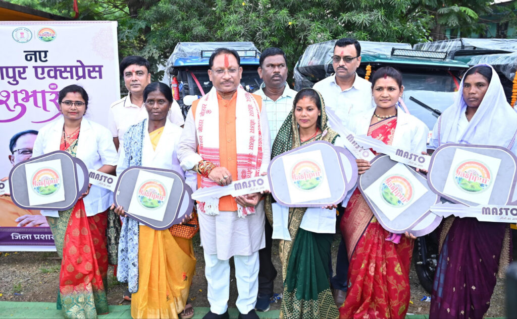 रक्षाबंधन के पावन अवसर पर मुख्यमंत्री श्री विष्णुदेव साय ने जशपुर जिले के गृहग्राम बगिया से जशपुर एक्सप्रेस का शुभारंभ किया और बिहान योजना से जुड़ी 12 दीदियों को राखी के उपहार स्वरूप ई-रिक्शा प्रदान किए। इस अवसर पर मुख्यमंत्री श्री साय ने स्वयं स्व-सहायता समूह की महिला श्रीमती गिलसोनिका पाण्डे के ई-रिक्शा में बैठकर बगिया निवास परिसर की यात्रा की।